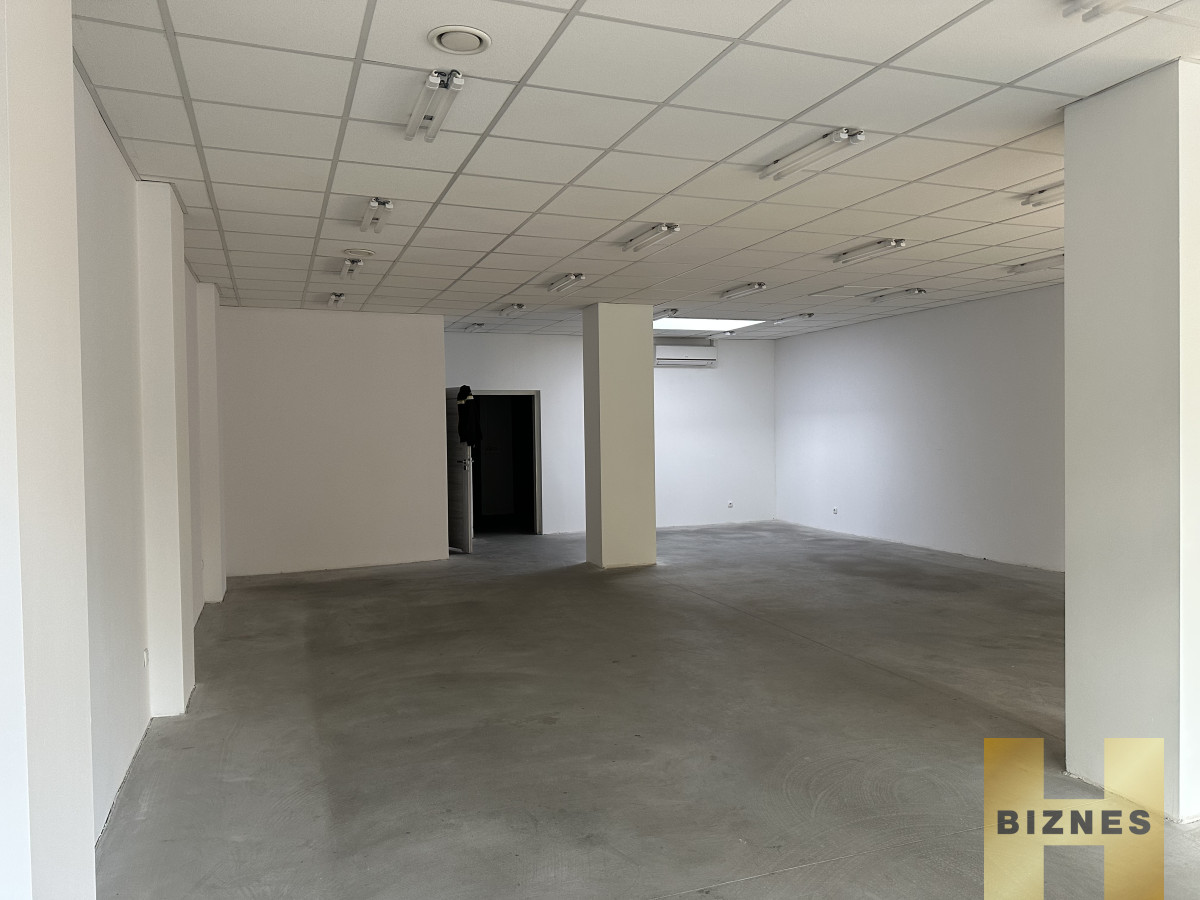 Dostępna powierzchnia do wynajmu 100,5 m2 ( 1 pomieszczenie usługowe open space, magazyn 74 m2, toaleta ). Pomieszczenia klimatyzowane.