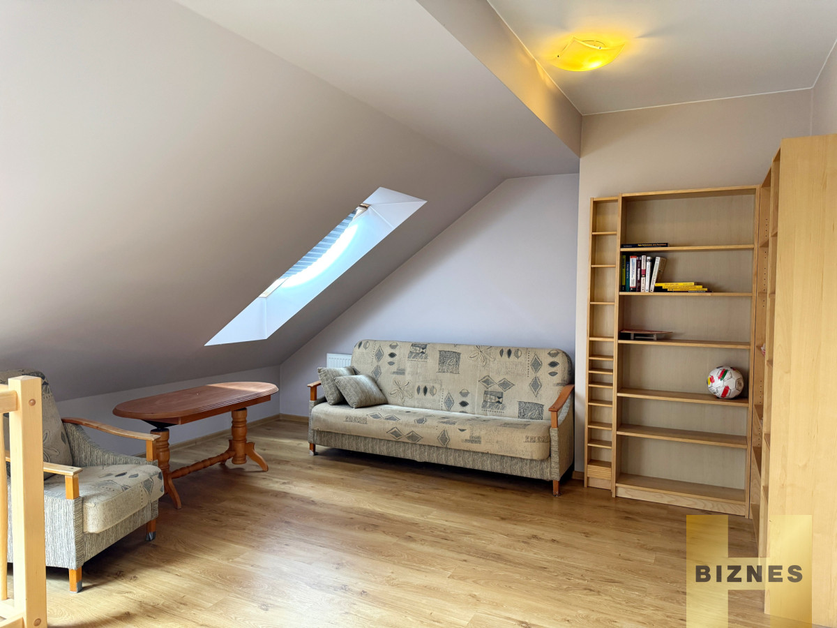 Mieszkanie jest dostępne od zaraz, wyposażone w sprzęt AGD i RTV. W salonie kanapa, tv, stół, krzesła. W sypialniach łóżka dwuosobowe oraz kanapa rozkładana na antresoli.