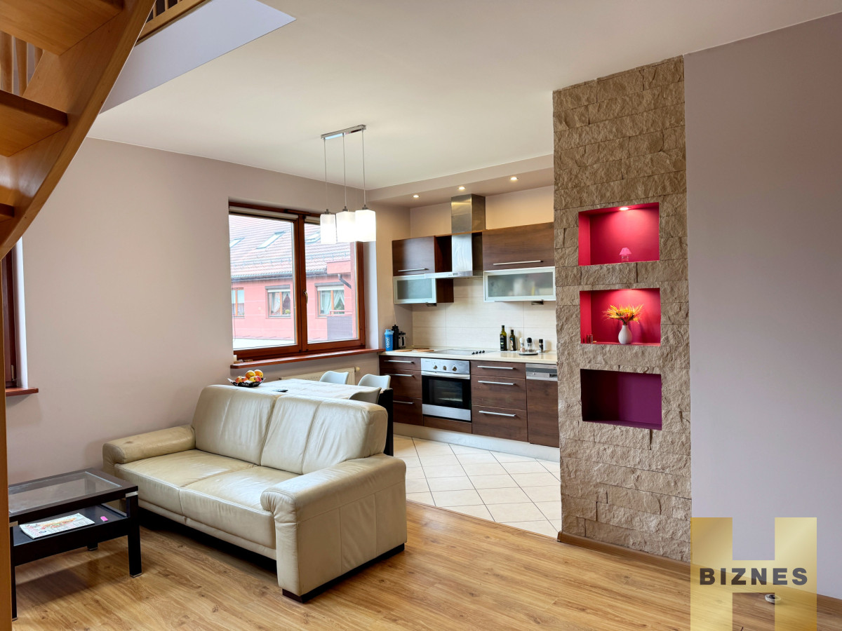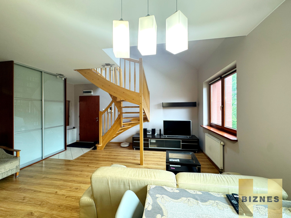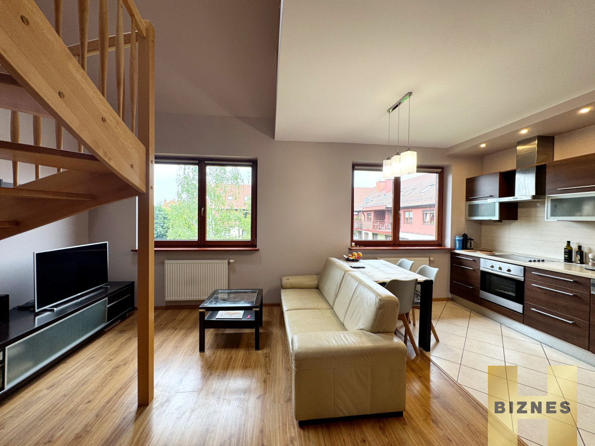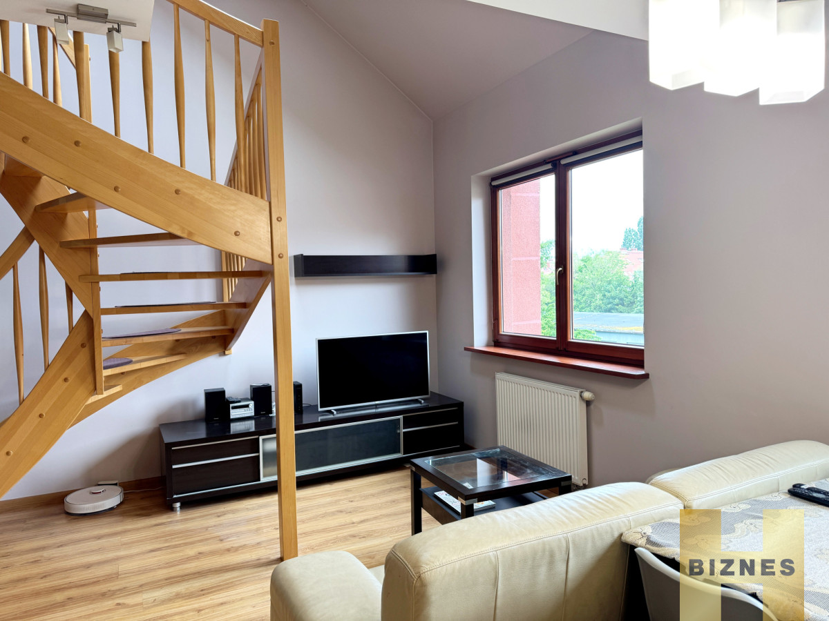 Do wynajęcia dwupoziomowe mieszkanie o pow. 70 m2 usytuowane na drugim piętrze na wrocławskim Ołtaszynie. Lokal składa się z salonu połączonego z kuchnią, dwóch sypialni, łazienki, antresoli oraz tarasu o pow. 6 m2.